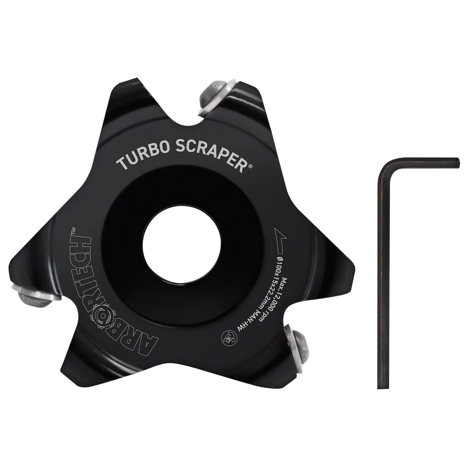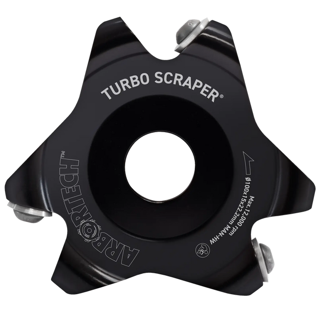 The Arbortech TURBO Scraper™ is like a turbocharged version of a traditional hand scraper. It has been specifically designed to cut on a negative angle resulting in minimal tear-out and chipping. This disc can be controlled by pressure and gently scrapes away at wood, delivering a smooth, scratch-free finish. Its unique design provides unparalleled accuracy, allowing you to see your carving progress, making it the perfect tool for highly detailed work. The TURBO Scraper™is designed to fit thePower Carving Unit™ or any standard 100mm (4") or 115mm (4 1/2") grinder.