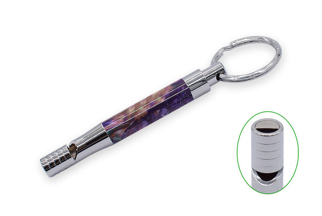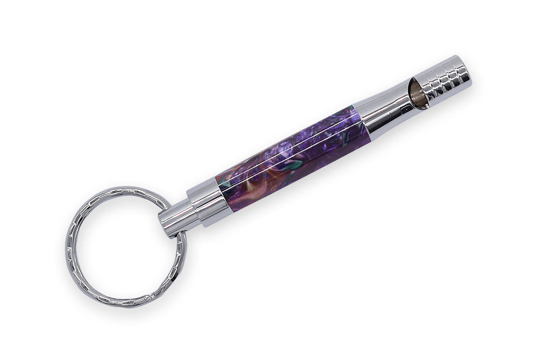 A neat key chain with a twist - well, really more like a tweet. The whistle actually gives quite a loud shrill shriek. Great for safety.