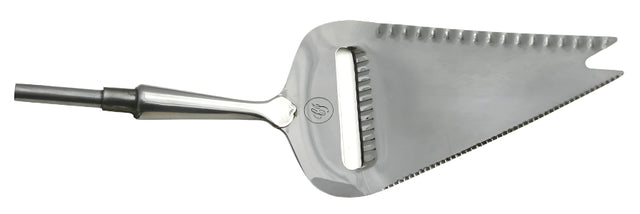 This versatile cheese planer, crafted from durable spring stainless steel, allows you to effortlessly cut, plane, and serve your cheese. Its design creates a stylish, corrugated finish on each slice, adding a touch of elegance to your cheese presentation.