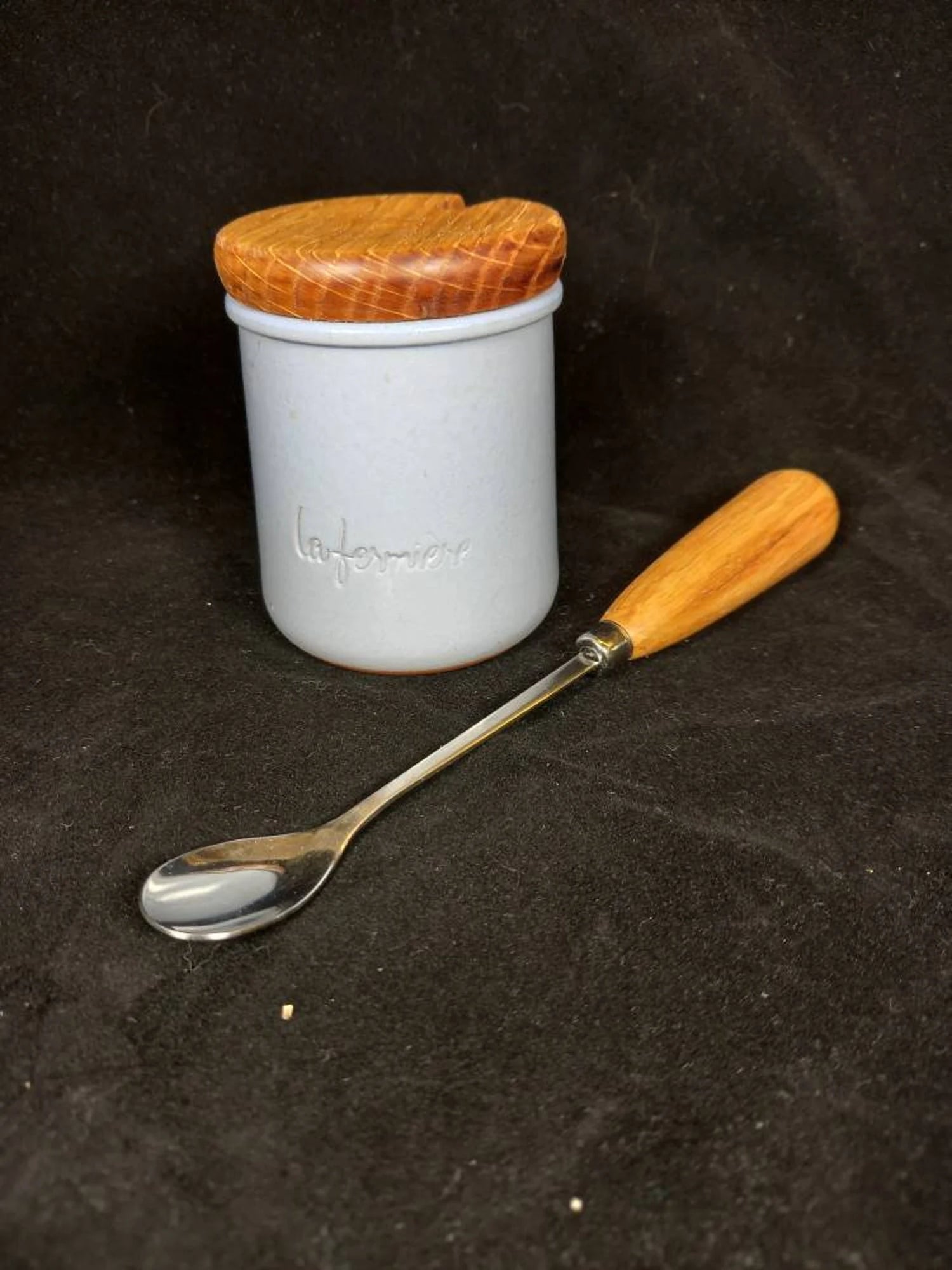 Small spoon and ferrule stainless steel. Can be used for jam, salt, cream or mustard.