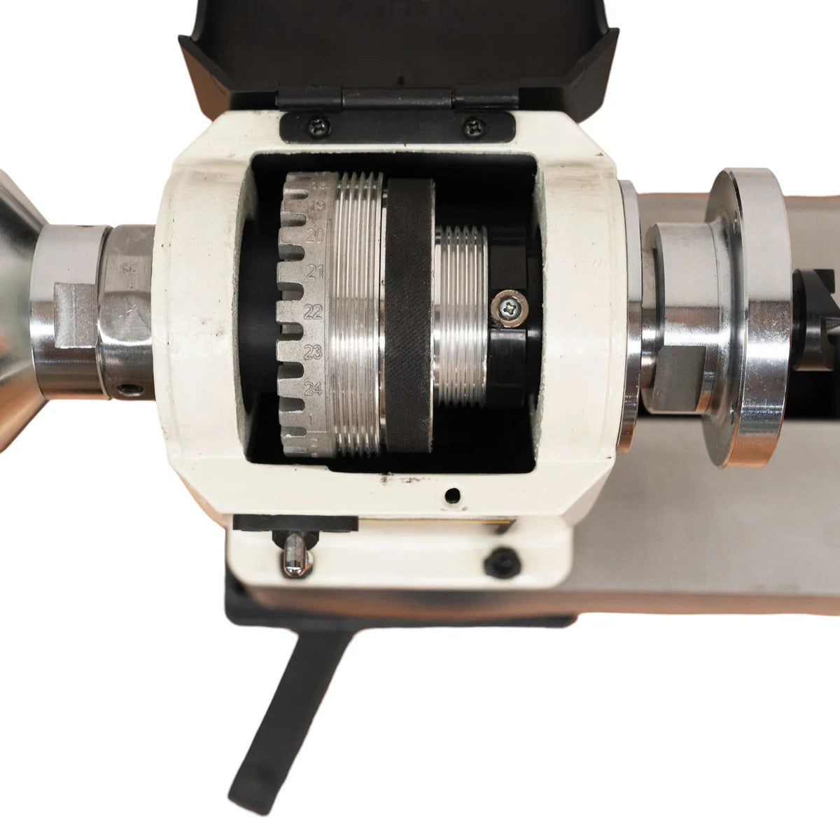 - Easy access to the pulleys to allow a quick change across the speed range.