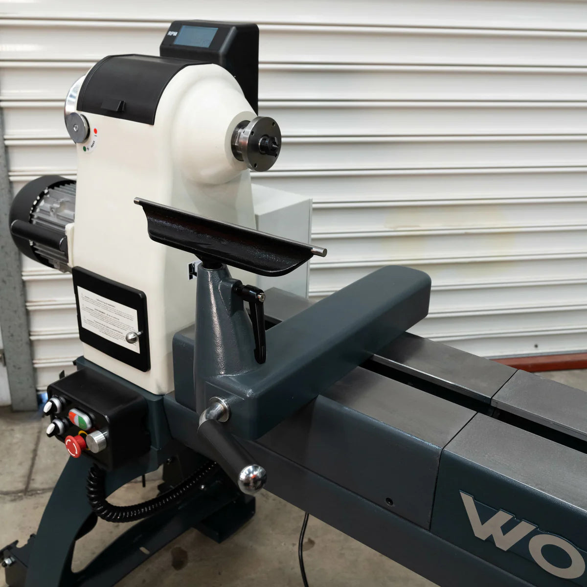 Cast iron components and heavy duty construction give this lathe extremely sure footing and minimal vibration. The electronic bed extension minimises the foot print of the lathe when not turning longer stock.