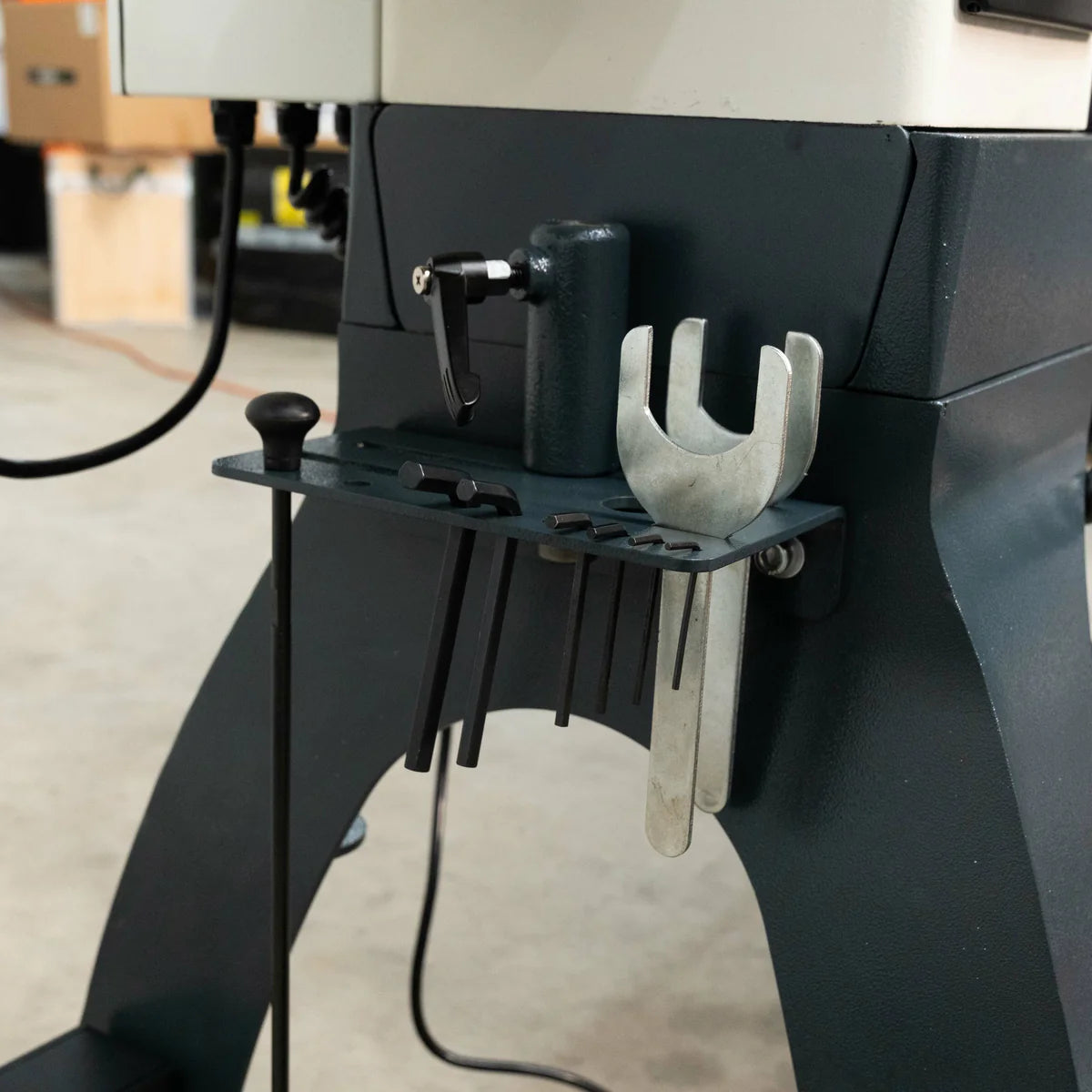 • Tail Stock includes a tool storage area.
