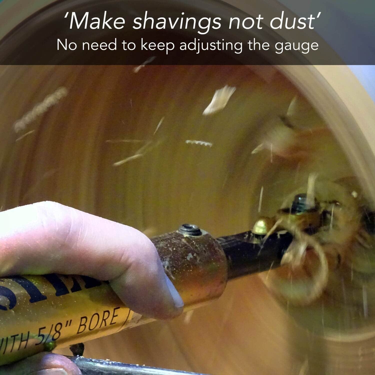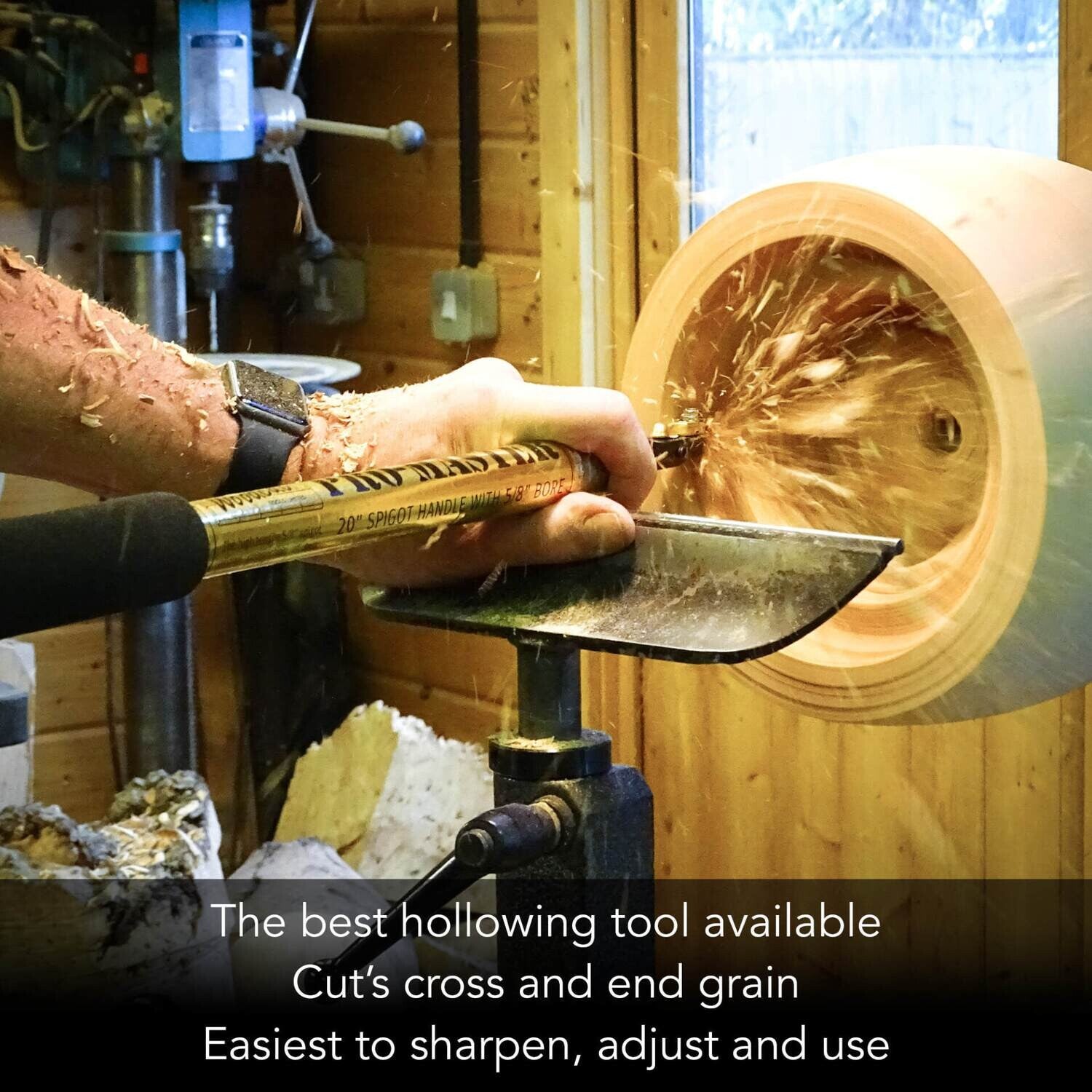 - EASY TO USE, NO NEED TO ADJUST CUTTERS - Unlike other tools you don't need to keep adjusting the cutter. The cutter is hardened M2 high speed steel that is open on one side to prevent clogging, which is a common problem with other end grain/hollowing tools. It also cuts at much slower speeds eg. 500 rpm, minimizing secondary shavings. The adjustable safety gauge determines the depth of cut and prevents dig-ins.