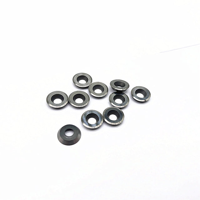Negative rake cutters. Optional cutters that virtually eliminate chipping and catches when turning resins, acrylic, and other man-made materials. Very effective for hollowing, allows for smooth catch-free passes.